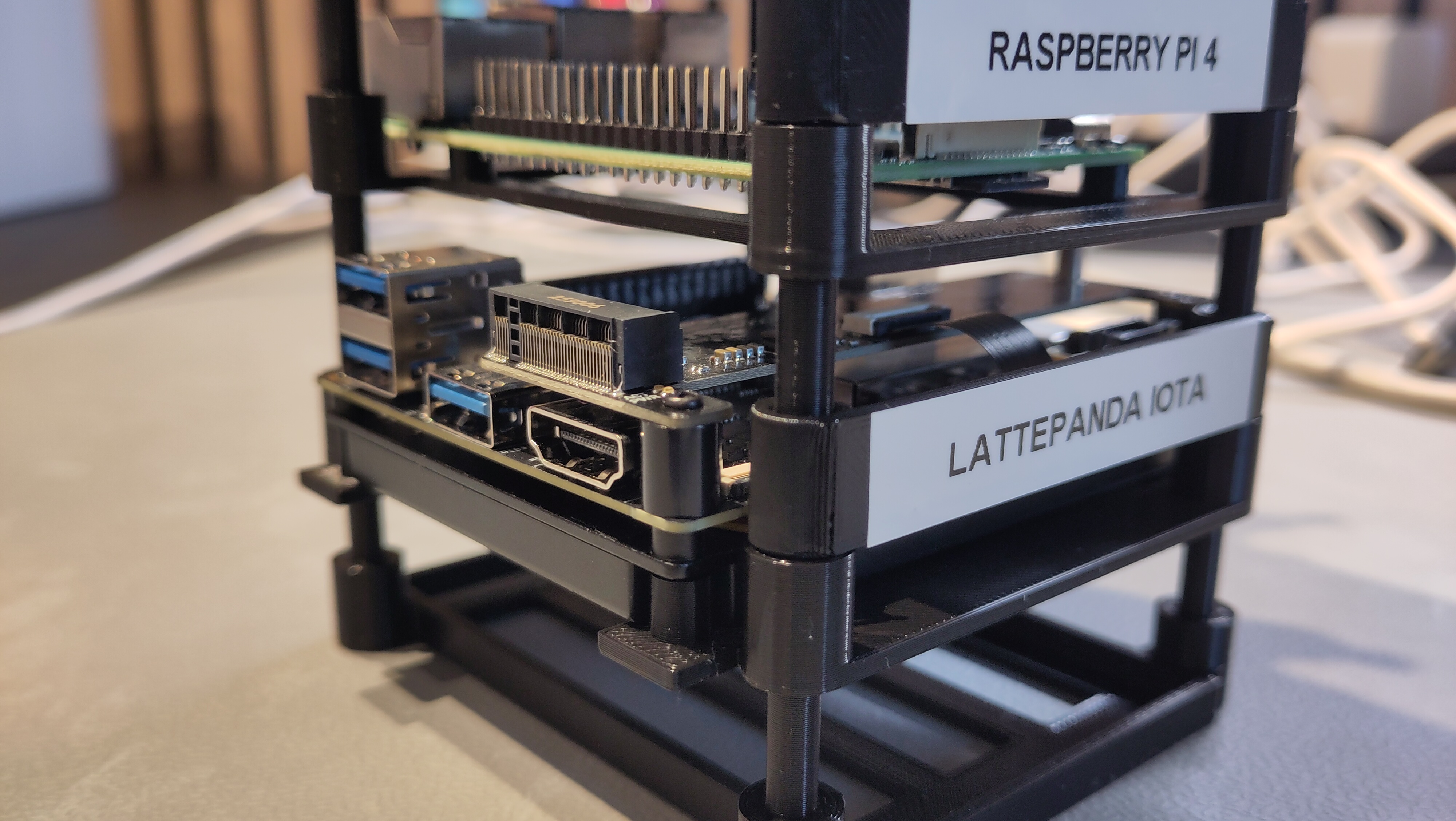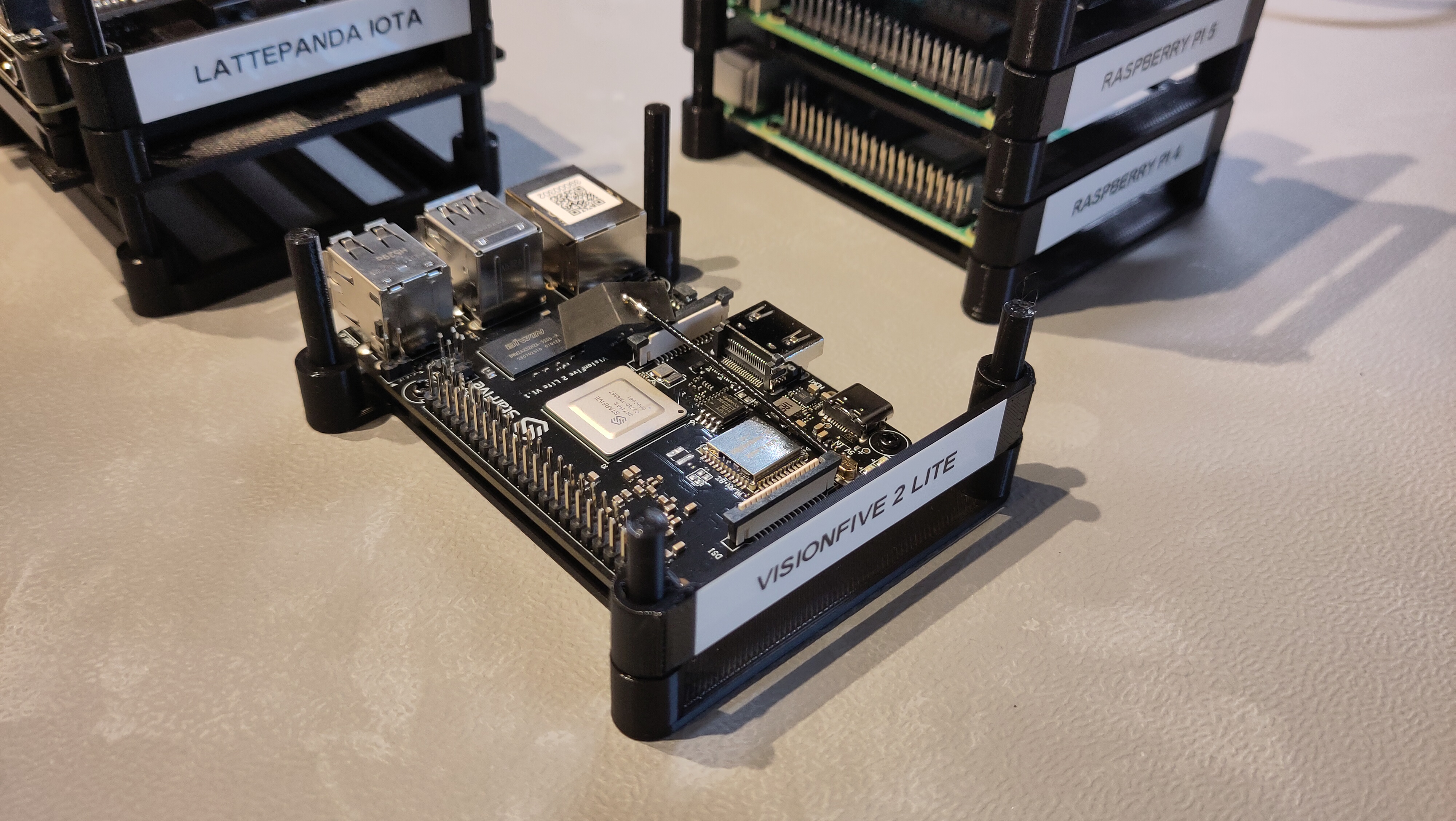I found an existing stackable Raspberry Pi holder on printables.com which can also hold compatible boards, and added a few variations: