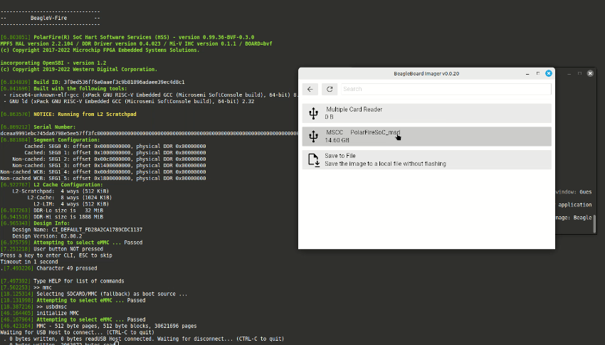 The key to solving this problem was updating the operating system using the BeagleBoard Imaging Utility. Unlike Raspberry Pi boards that use SD cards, the BeagleV-Fire has eMMC storage with the operating system pre-installed. This means you need to replace the board’s existing OS with a newer version. The process took about half an hour in real time (though I’ve edited the video down significantly), including updating the system and installing all the latest dependencies.