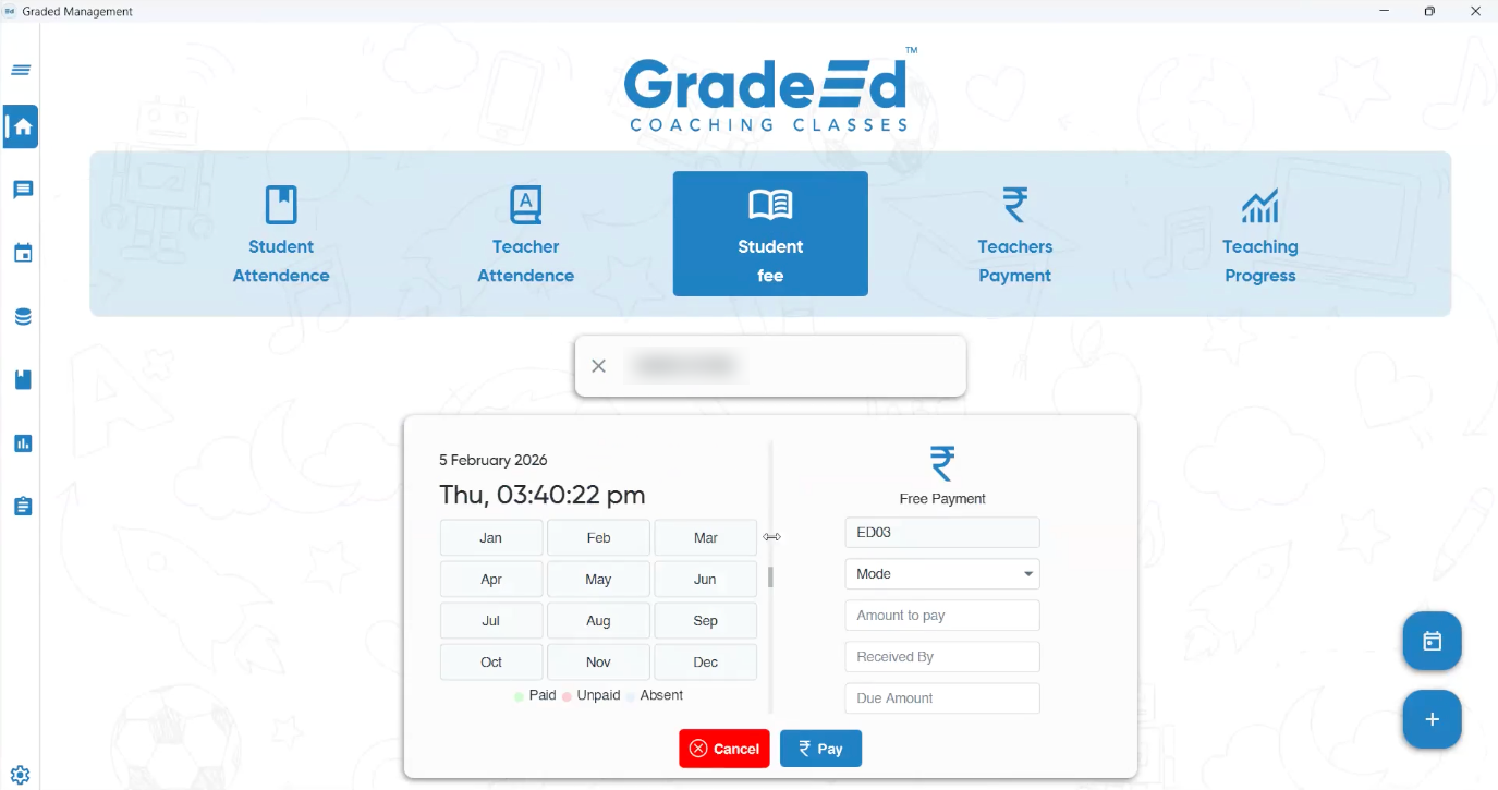 GradedAttendance is a desktop application built with JavaFX to manage student attendance and classroom activities in educational settings. The application demonstrates several key advantages of using JavaFX for educational tools, making it a perfect solution for teachers and educational institutions.